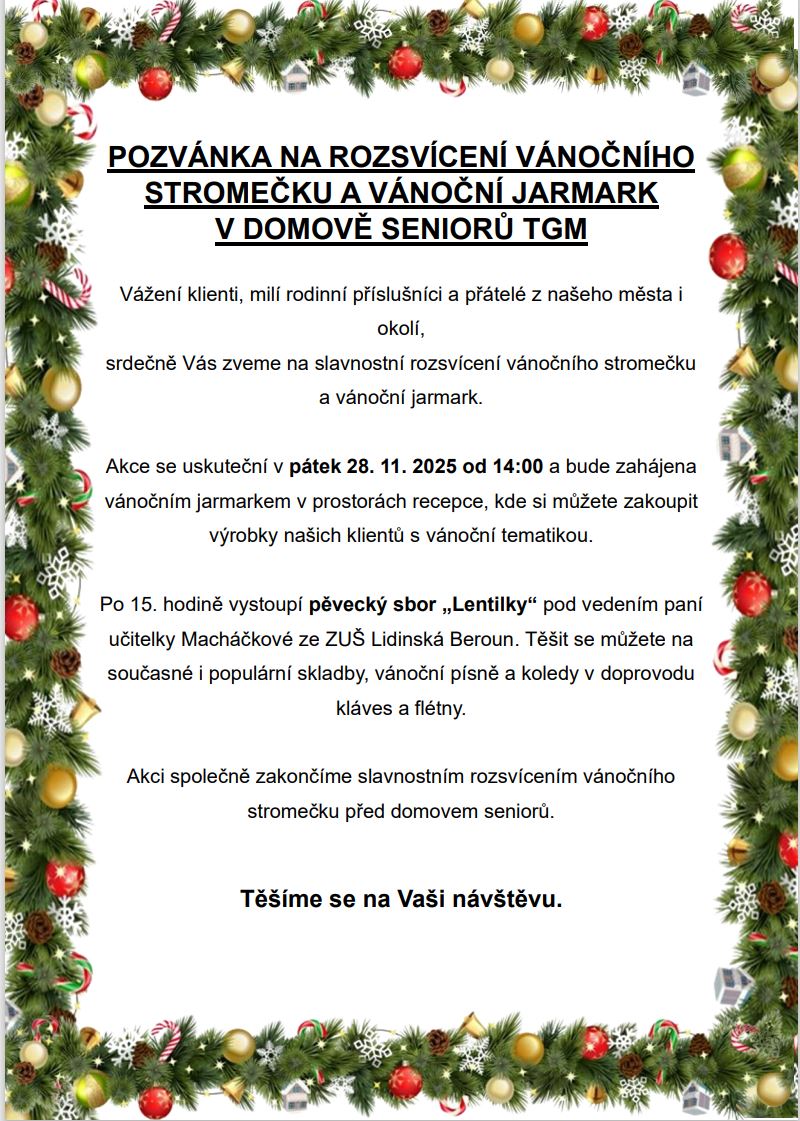 Rozsvícení vánočního stromku a vánoční jarmark 28.11.2025