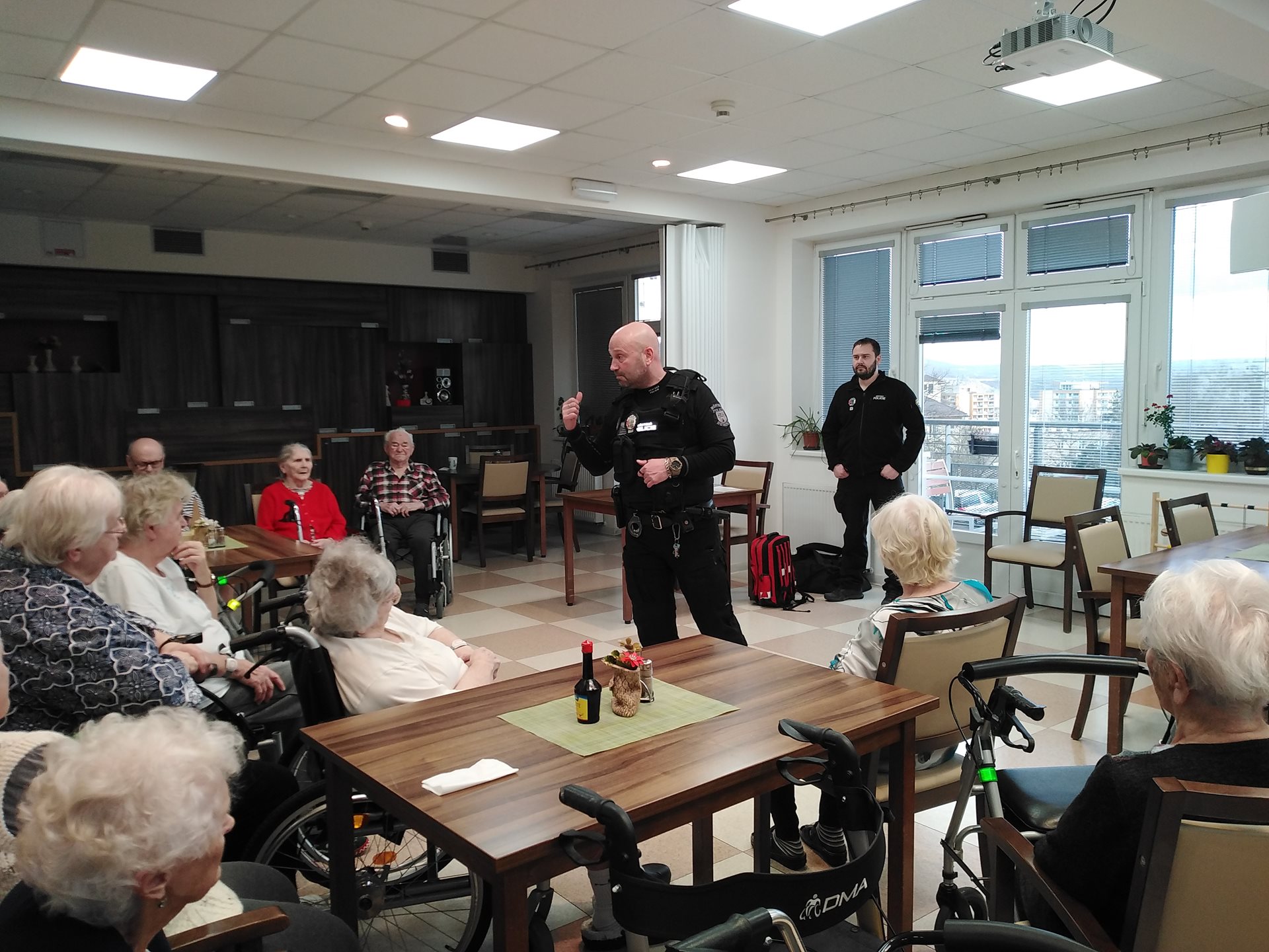Na začátku letošního roku nás navštívili příslušníci Městské policie, kteří pro naše klienty připravili besedu na téma podvodného jednání namířeného proti seniorům. Takto zaměřené beseda měla našim seniorům pomoci s rozpoznáním případných nebezpečí nebo podvodů zaměřených na starší osoby.