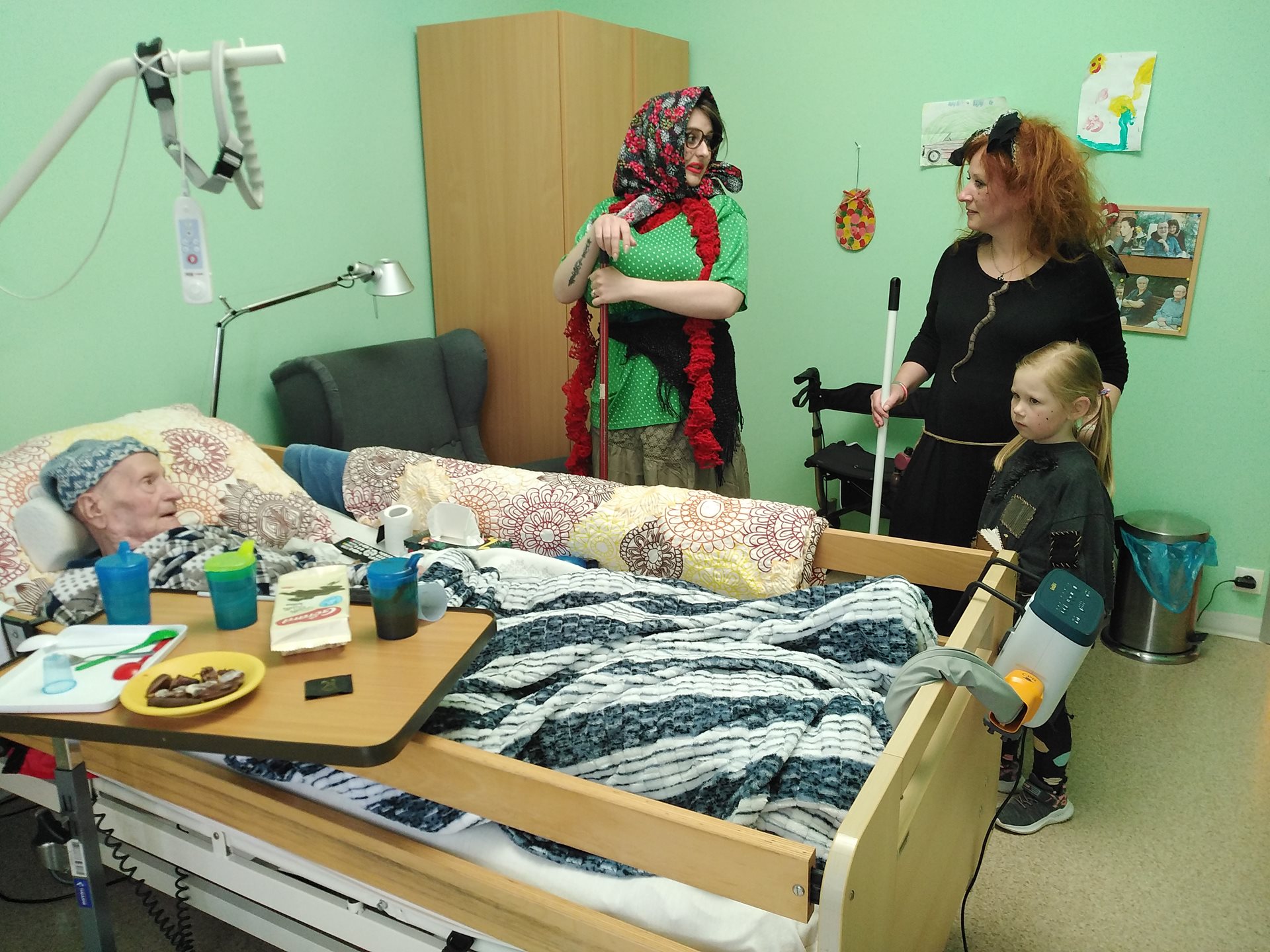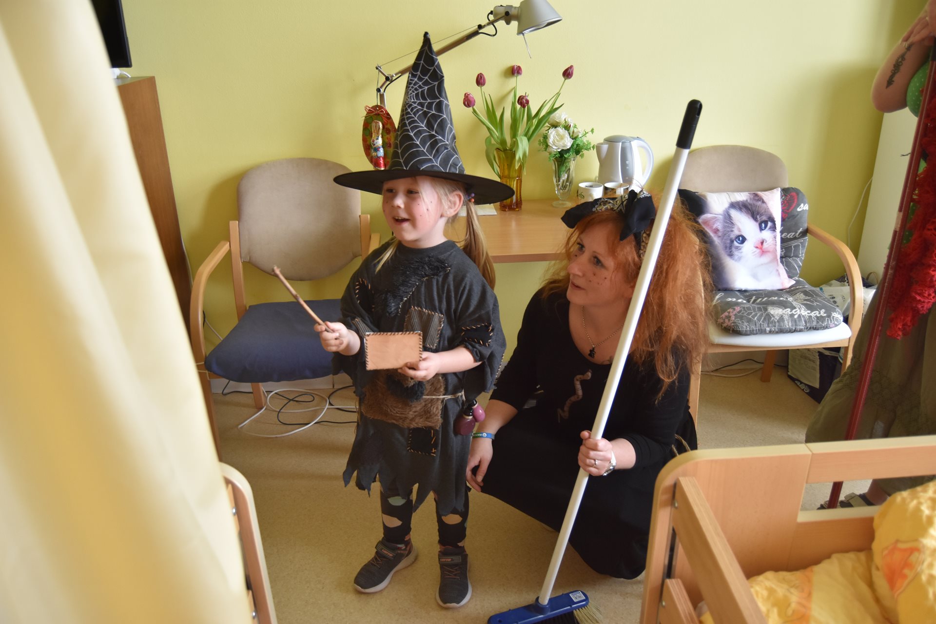 Klienty též potěšily návštěvou čarodějnice v podání zaměstnankyň Evy Rozhoňové a Petry Kábrtové s dcerou a děti z Dětského domova Beroun. V kostýmech nezapomněli pozdravit i klienty, kteří zůstaly na pokojích. Všichni jsme si akci opět velmi užili.