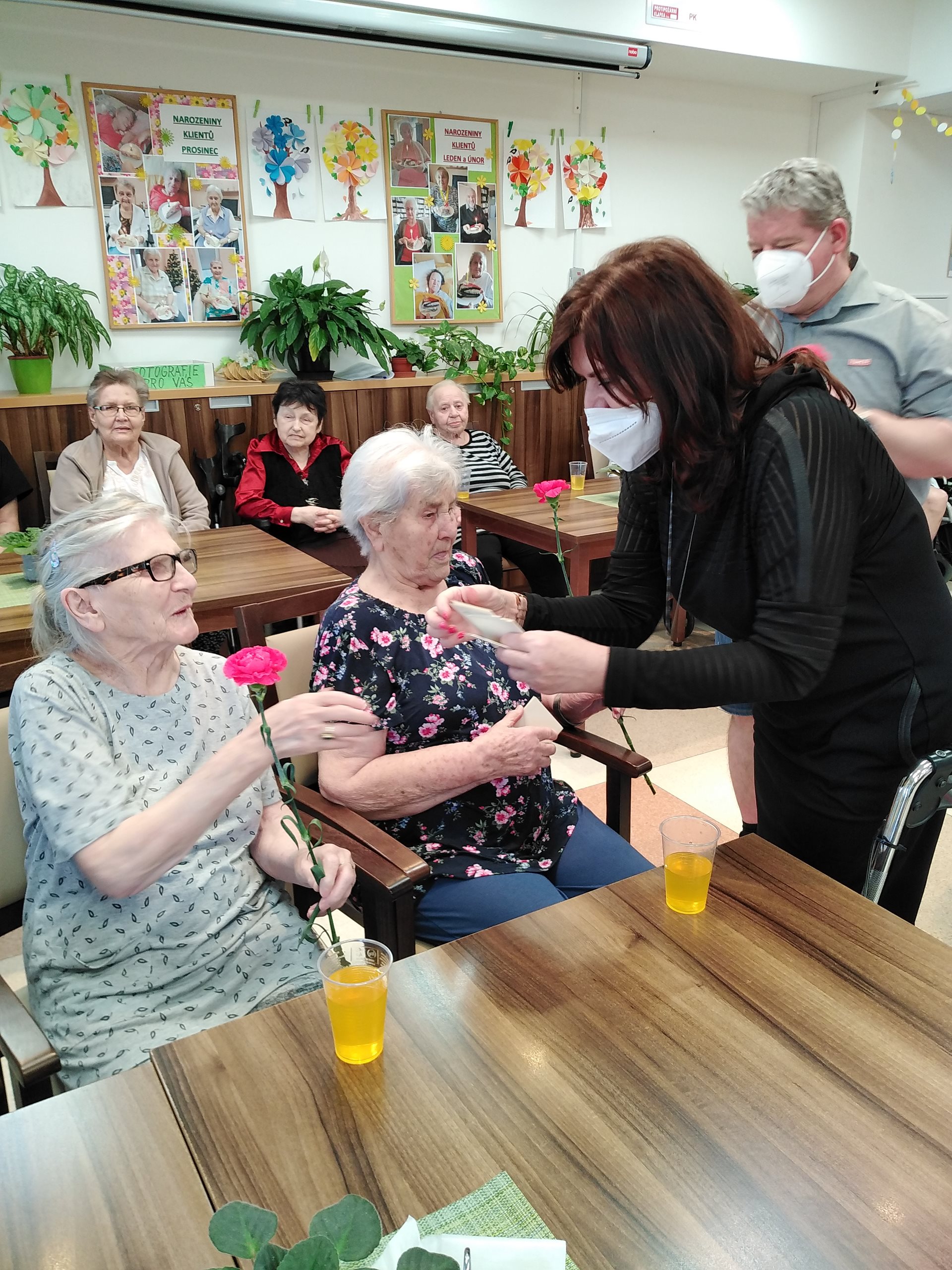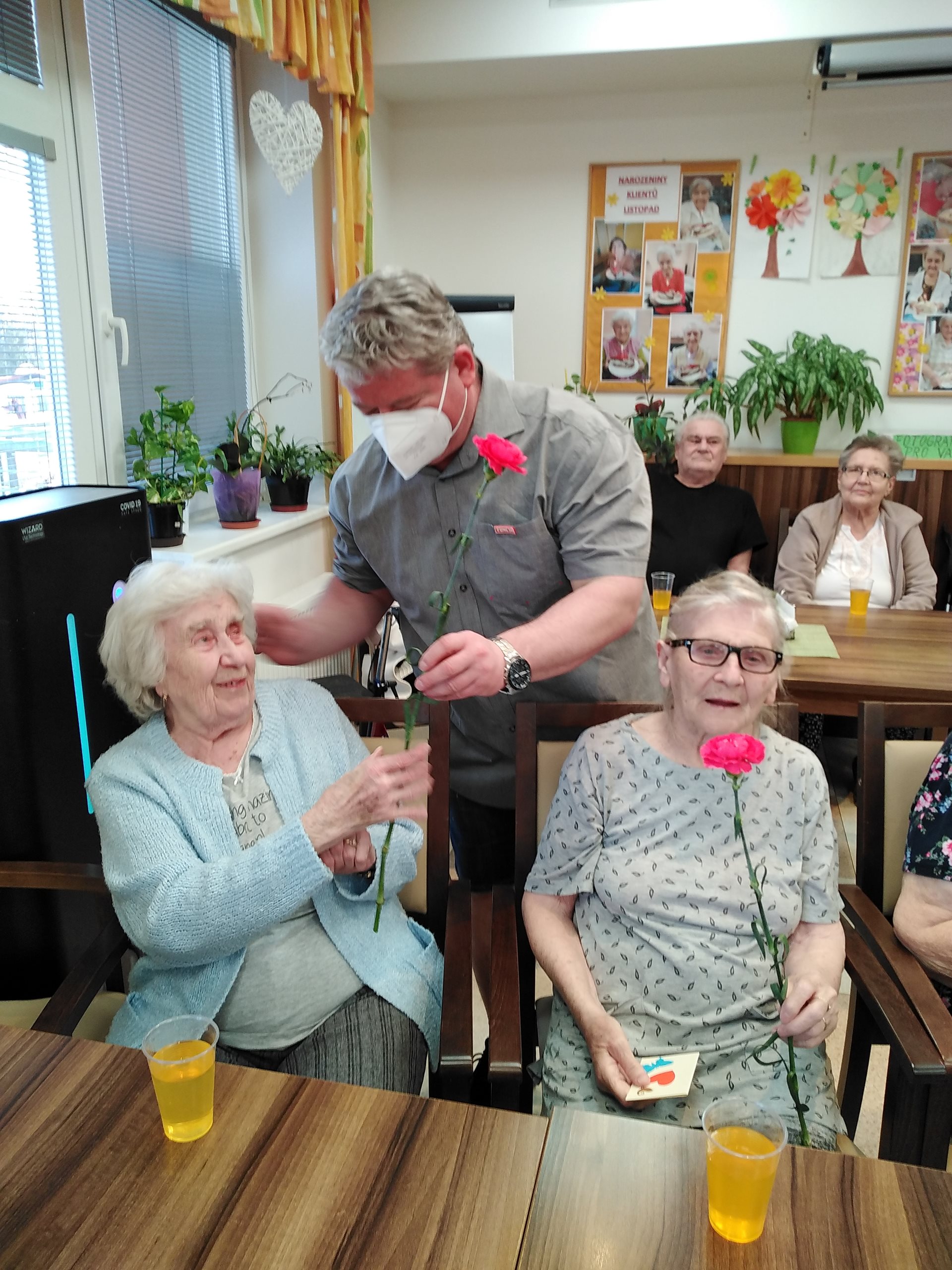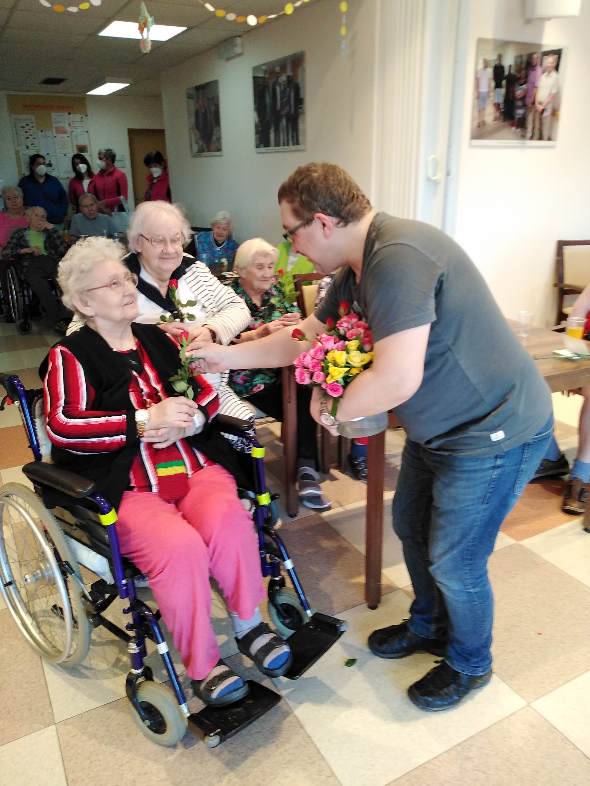 Oslava MDŽ proběhla 8.3.2022. V dopoledních hodinách zástupce ředitelky, pan Vaňout, společně s naším klientem panem Magulou, obdarovali květinami naše zaměstnankyně a též na pokojích a v jídelně probíhalo předání květin a přáníček od dětí za účasti paní ředitelky PhDr. Jitky Synkové. Všichni klienti dostali k obědu zákusek od pana Jiráska a od 14:30 v jídelně Domova probíhalo hudební vystoupení pana Krulicha. Po skončení hudebního vystoupení měl pan Krulich připravené překvapení v podobě růží, které rozdal všem ženám.